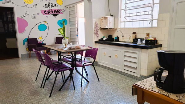 Ambiente colaborativo com 4 mesas individuais, ideal para profissionais autônomos.