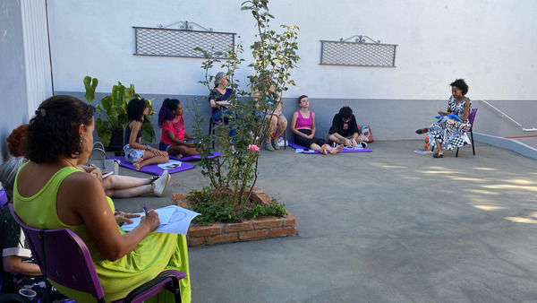 Espaço amplo e arborizado, perfeito para atividades físicas, yoga, vivências, rodas de conversa e descanso.
