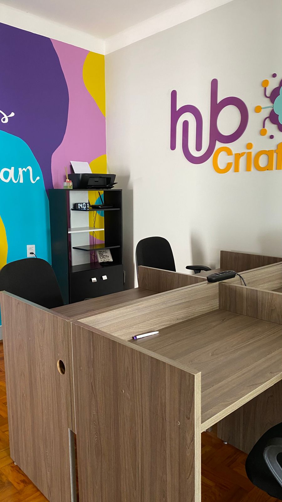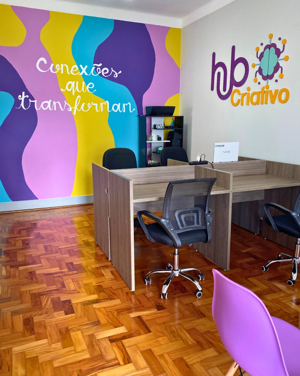 Ambiente colaborativo com 4 mesas individuais, ideal para profissionais autônomos.